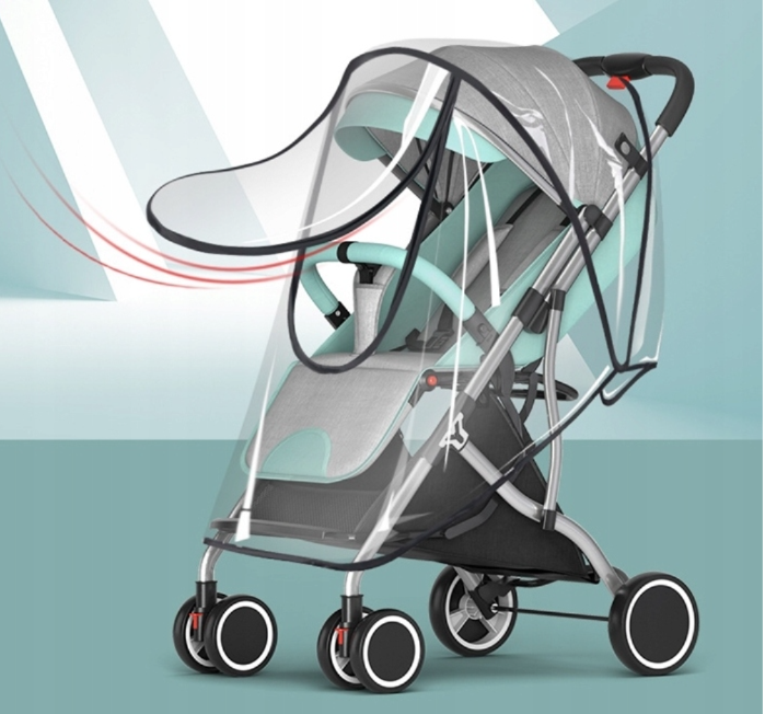 Légáteresztő képesség: Az esővédő mindkét oldalán szellőzőnyílások találhatók, amelyek lehetővé teszik a levegő keringését az esővédőben, és a gyermek friss levegőt lélegezhet be a belsejében.